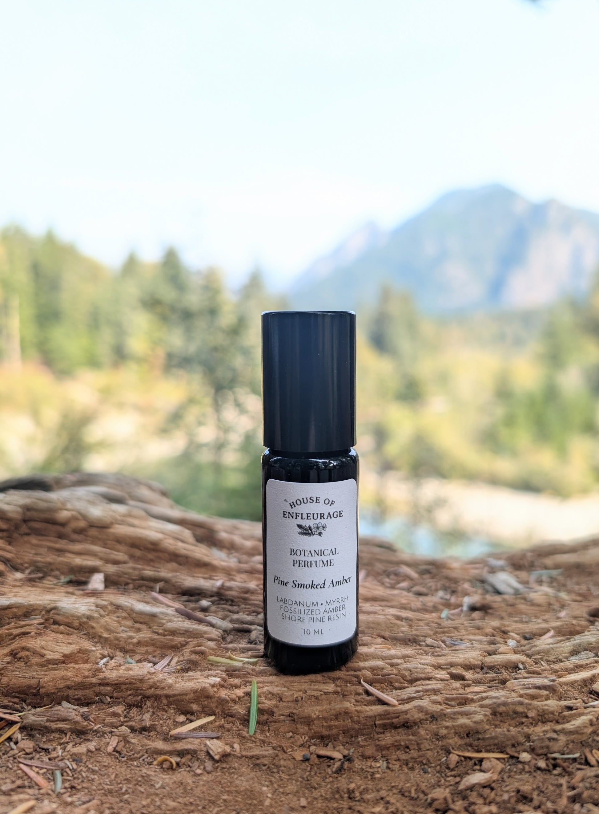 Pine Smoked Amber captures the structure of true amber — resinous, woody, and gently smoky. Labdanum and myrrh CO₂ anchor the blend with depth, balanced by fossilized amber and beeswax. Hinoki wood and patchouli add charred wood warmth, while frankincense and black spruce lift the resinous core. Vanilla and ambrette seed soften the edges for a smooth, polished drydown.